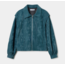 Textured bomber jacket featuring a lapel collar and puffed long sleeves. Front and back yokes with stitchings. Side pockets. Long wide sleeves gathered in cuff pieces. Black Lining. Front metal zipper fastening with sides on tone.