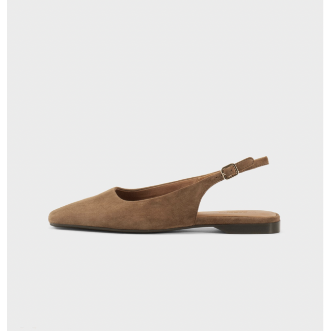A beloved style with timeless appeal. The Delia slingback flat is crafted from brown suede and features a subtle square toe shape.