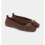 Slip-on ballet flat shoes with 0,5cm heel, made in a textured knitted fabric in brown colour. Seamless construction. Decorative metallic silver buckle on front (imagotype), with faux leather thick treads on both sides. Branded tab on back, made in faux leather on tone with engraved logo. The sole is a flexible rubber material, securely attached with a hidden stitch technique. Insole cushioned with a soft lining on tone