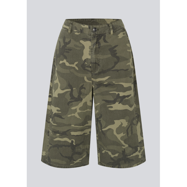 Long cargo shorts in camouflage print. The AthenaMD Long Shorts are made from cotton denim and feature pockets, belt loops, and a button-and-zip fly closure. A modern and stylish choice for relaxed summer looks.