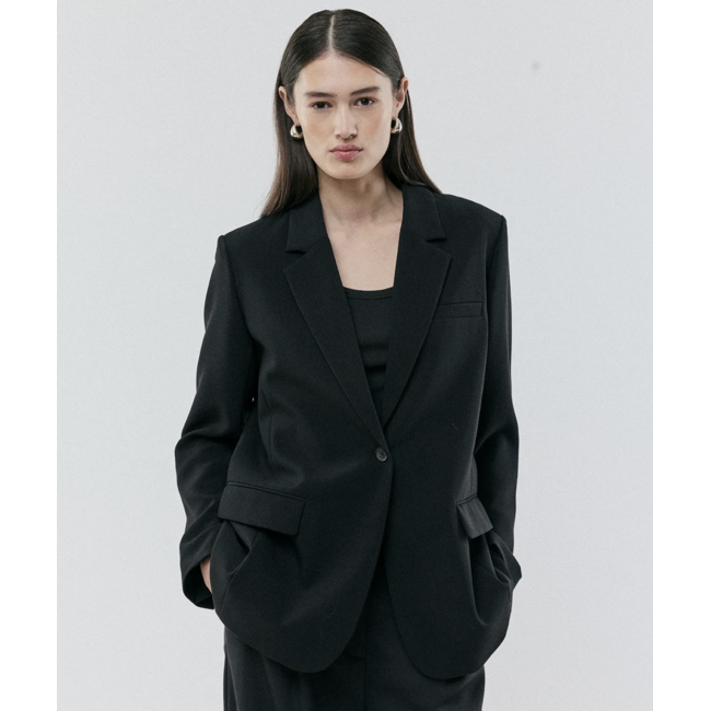 Gale blazer in Black has a classic and elegant design, fulfilled by the beautiful revers collar and a long fit. The blazer has a button closure at the front and a chest pocket at the left side.