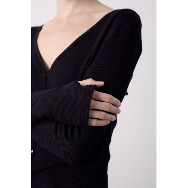 SEASONS BY MACABLA Ribbed Cardigan Black
