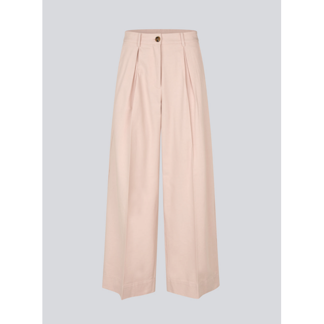 Suit pants in light pink with wide legs and pleats at the top. ToreMD pants have a medium-high waist, zipper, side pockets and paspoil pocket in the back.