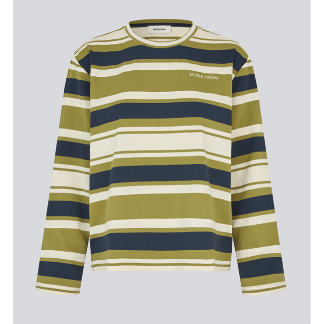 Striped long-sleeved T-shirt in navy blue and green. The UlvaMD Stripe LS T-shirt features a round neckline, a relaxed fit, and a discreet chest logo. A fresh and casual style with a timeless expression.