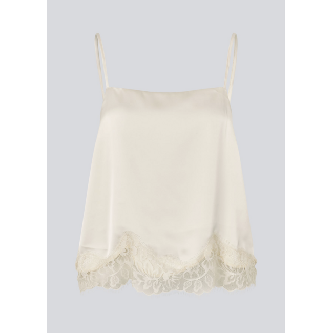 Delicate satin top in white/cream with lace details. Vuemd top has adjustable straps and refined lace details at the hem. Perfect worn alone or styled as part of a layered look.