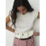 Textured top with slightly high neck and fitted silhouette. Seams detail on front and back with asymmetrical directions. Turned-up bottom with trims. Invisible zipper closure on back.